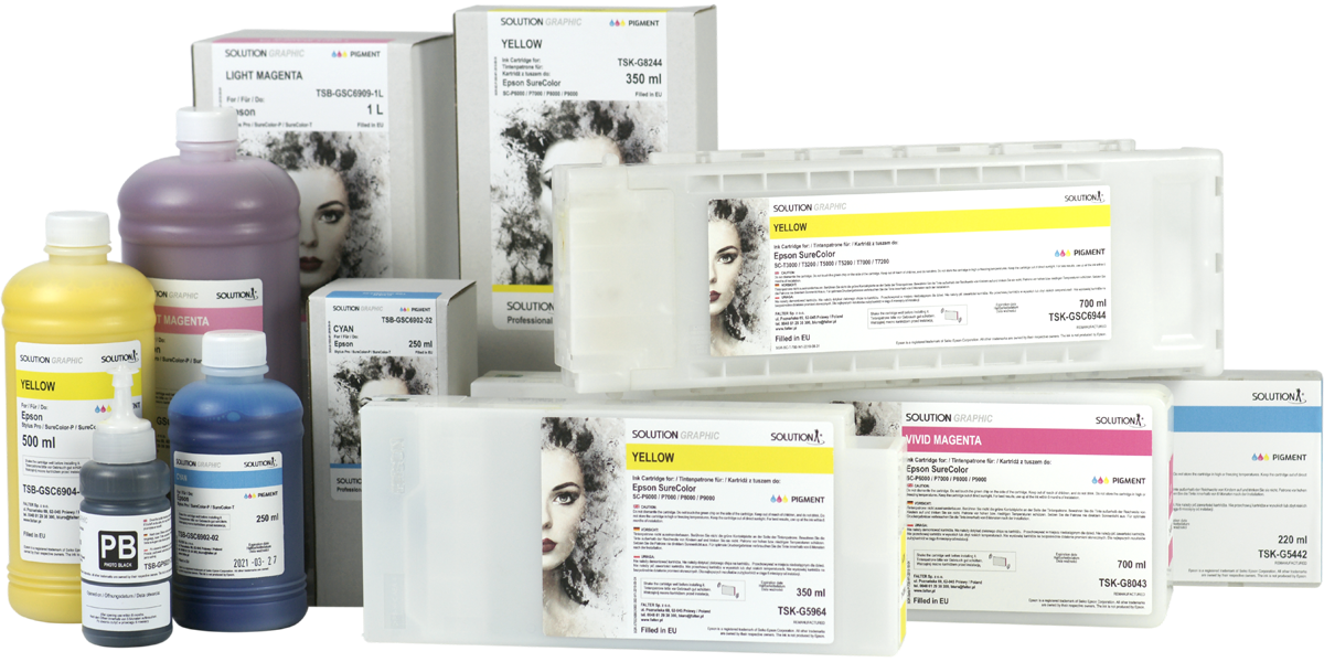 Solution GRAPHIC to wysokiej jakości, w pełni kapsułkowany atrament pigmentowy, dedykowany do drukarek Epson SureColor serii T i P. Charakteryzuje się szerokim gamutem kolorystycznym, doskonałym odwzorowaniem barw oraz wysoką gęstością czerni. Ten w 100% pigmentowy atrament cechuje się wysoką stabilnością w czasie oraz zapewnia dobry poziom połysku na papierach z powierzchnią błyszczącą.