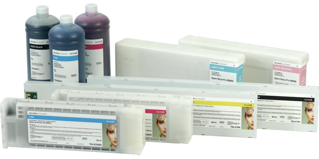 Inks designed for eco-solvent printing technology. They ensure fast drying, high resolution, and durable prints—both for indoor and outdoor applications. Perfect for producing billboards, wall graphics, and advertising signage.