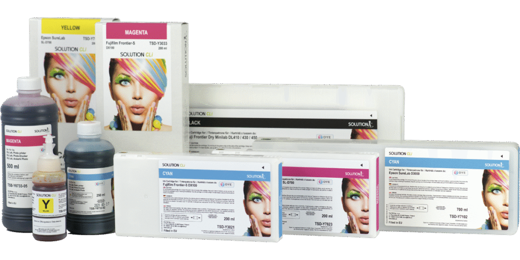 Solution CLi i CLde to nowej generacji atramenty barwnikowe do suchych minilabów firm Fujifilm, Epson i Noritsu. Wyróżniają się naturalnym schematem kolorystycznym. W produkcji zastosowano najwyższe standardy czystości. Każda partia jest dodatkowo testowana pod kątem jakości, w szczególności gamutu kolorystycznego. Atramenty Solution są zaprojektowane tak, by były chemicznie kompatybilne z atramentami OEM – co oznacza, że można je ze sobą mieszać. Poprawne odwzorowanie kolorów gwarantowane jest dzięki naszym profilom ICC.