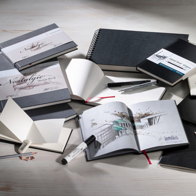 Każdy szkicownik Hahnemühle zawiera wysokiej jakości, grube papiery o szorstkiej powierzchni przeznaczone do ołówków, tuszu indyjskiego, pasteli lub akwarel. Dostępne w wygodnych formatach A6 i A5, większych A4 i A3, a nawet kwadratowych, aby zaspokoić wszelkie potrzeby konsumentów.