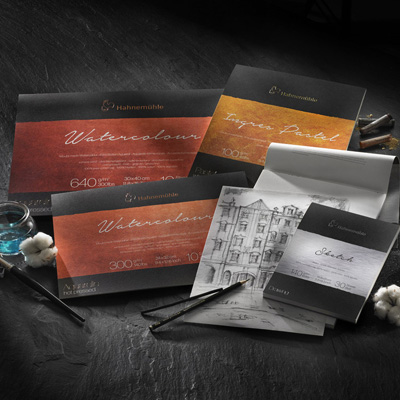 Hahnemühle FineArt oferuje papier akwarelowy z zawartością włókien szmacianych i klejony powierzchniowo, matowy i gruboziarnisty. Te papiery i bloki są naprawdę „wszechstronne”: nadają się równie dobrze do akwareli, gwaszu, tempery, pasteli, węgla, ołówka i kredek.